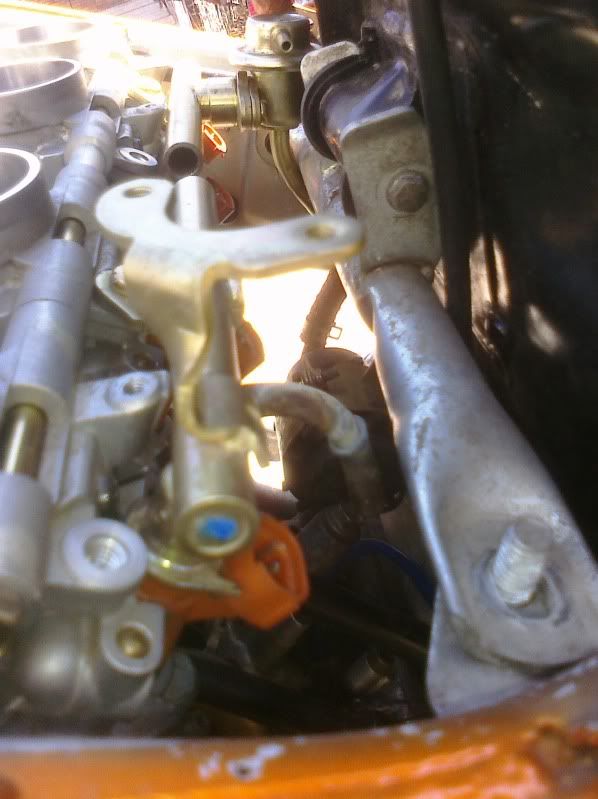 **note, the hole in the frame was for a older attempt at setting up the carbs, i don't think you need the hole, though you may need to "message" the frame with a 3 pound hammer to make it fit.